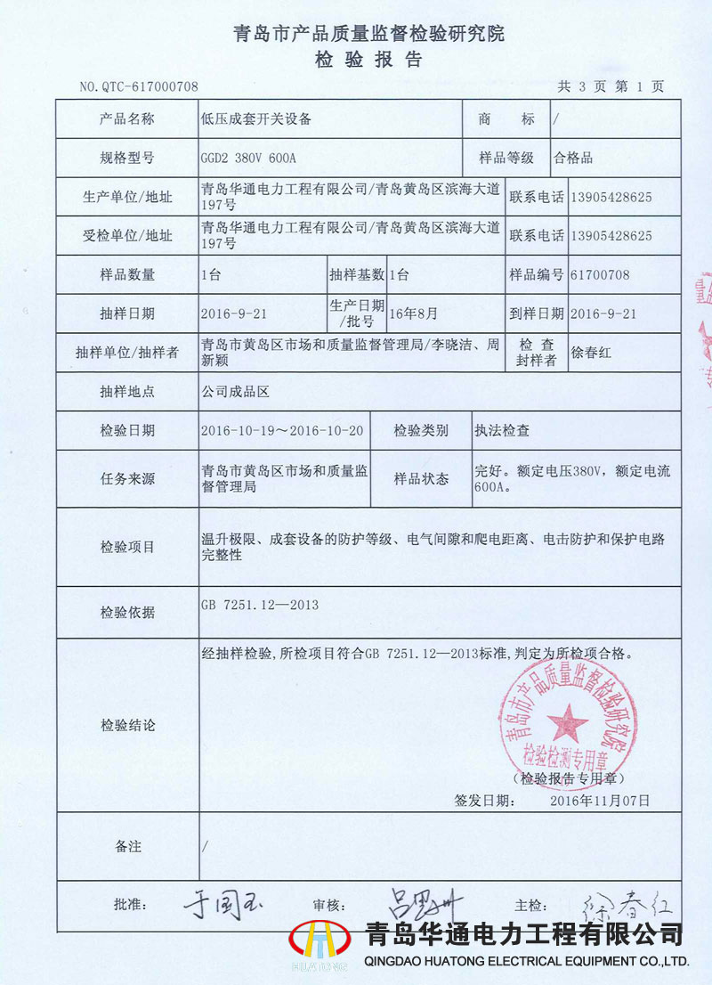 低壓成套開關設備檢驗報告