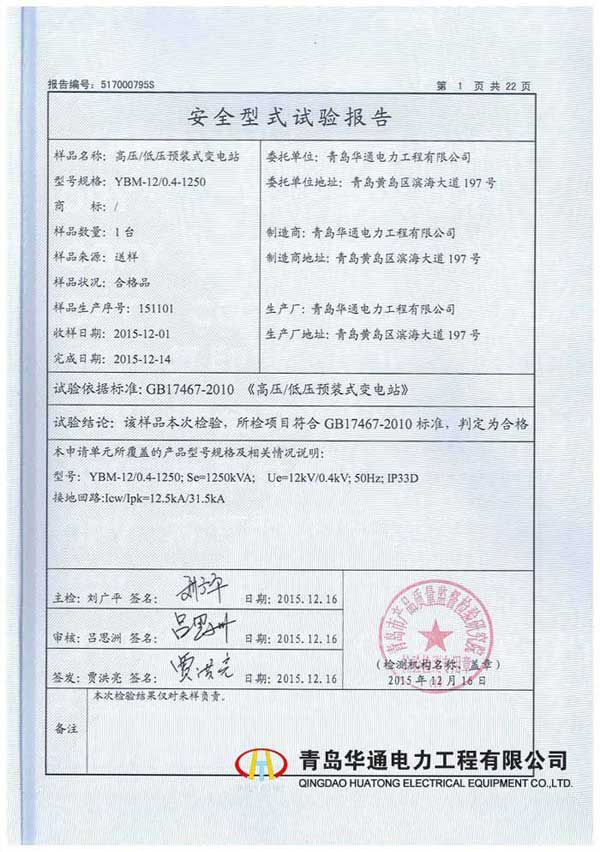 MNS低壓成套開關設備型式試驗報告