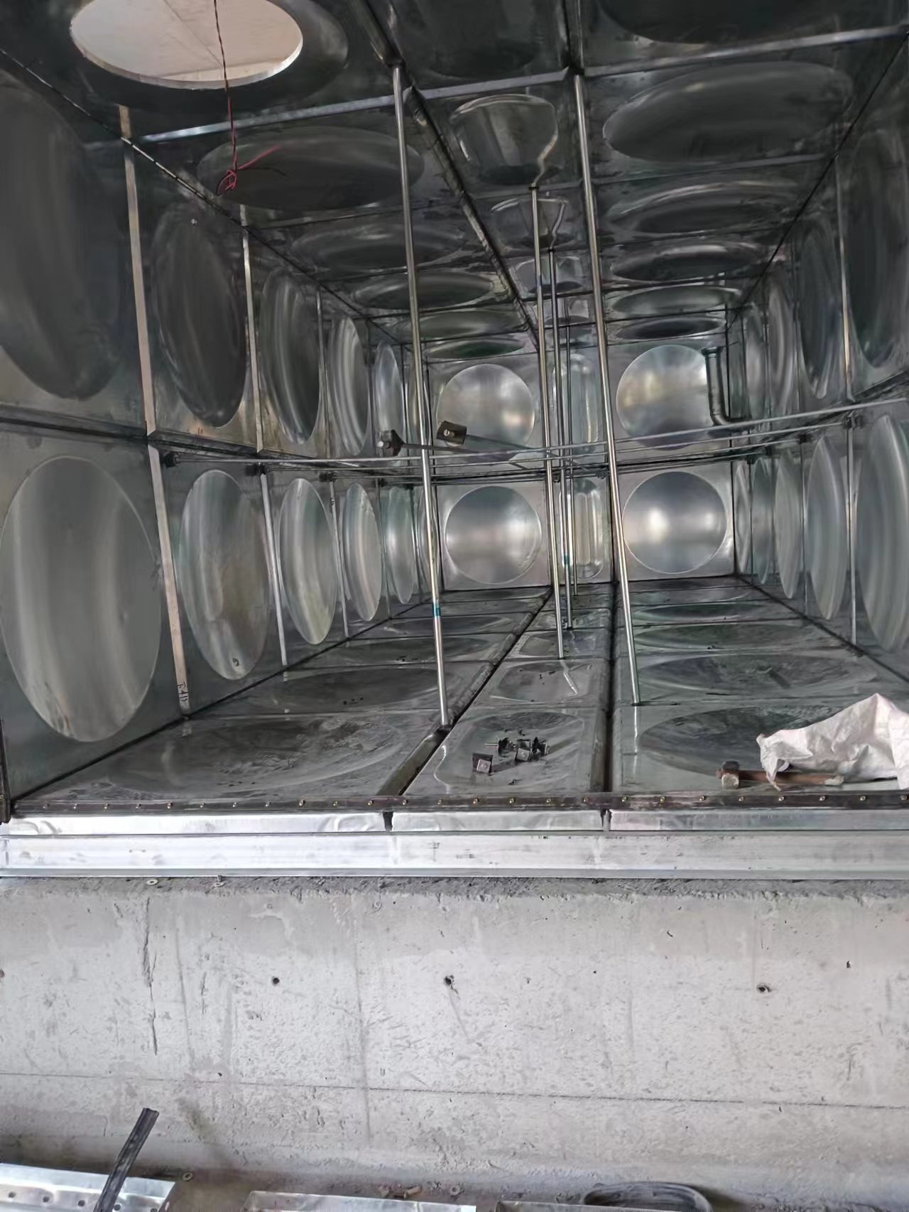 我司承接的山東淄博福源泰有限公司年產(chǎn)20萬方新型高回彈聚氨酯新材料及智慧型寢具技改項(xiàng)目30立方鍍鋅鋼板保溫水箱已經(jīng)安裝試水完成。水箱位于室內(nèi),采用的是5公分橡塑鋁箔布保溫。